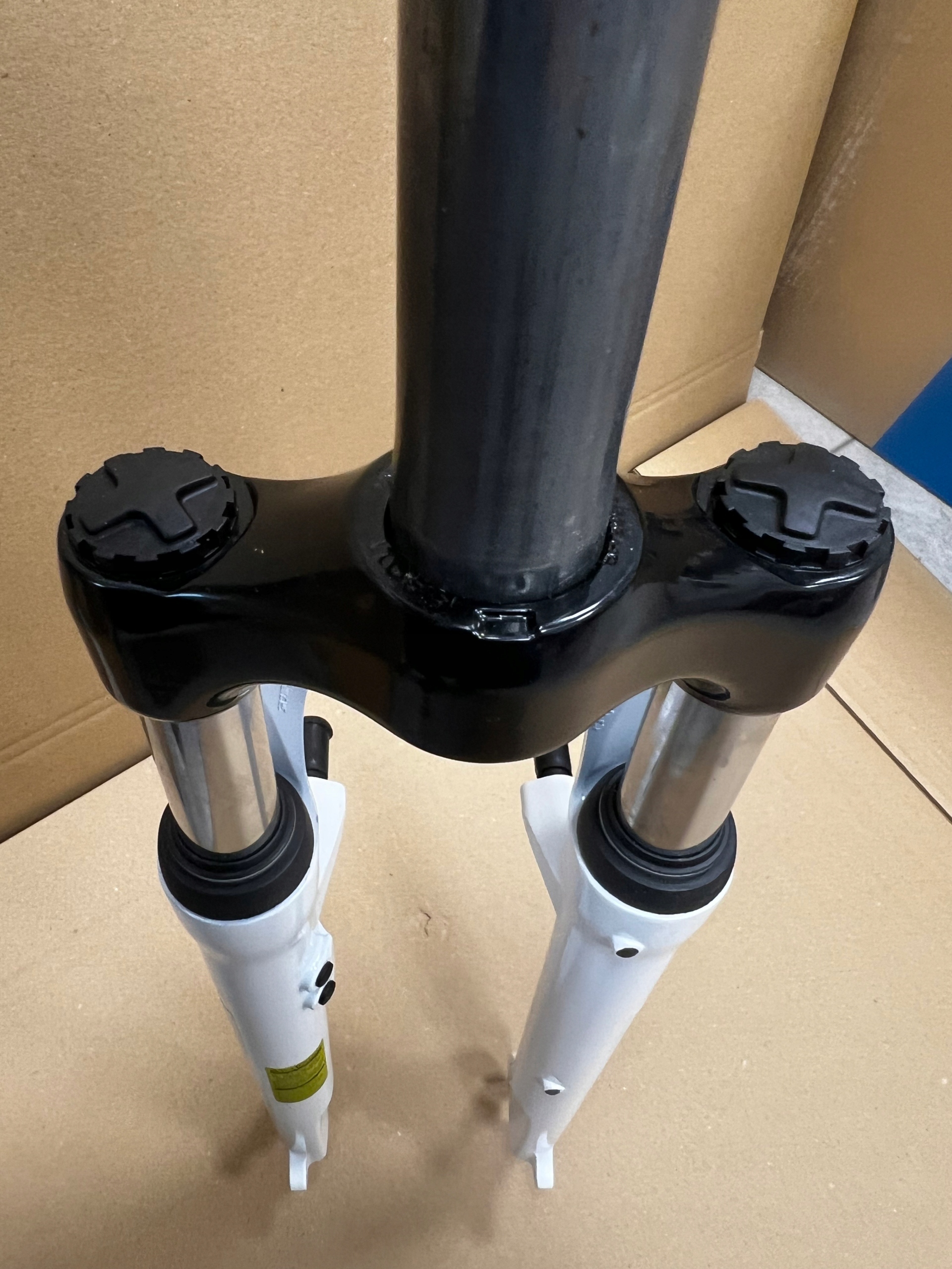 Amortyzator wykonano z wytrzymałych materiałów – rura sterowa ze stali, a golenie z aluminium. Z łatwością znoszą one nawet duże obciążenia.