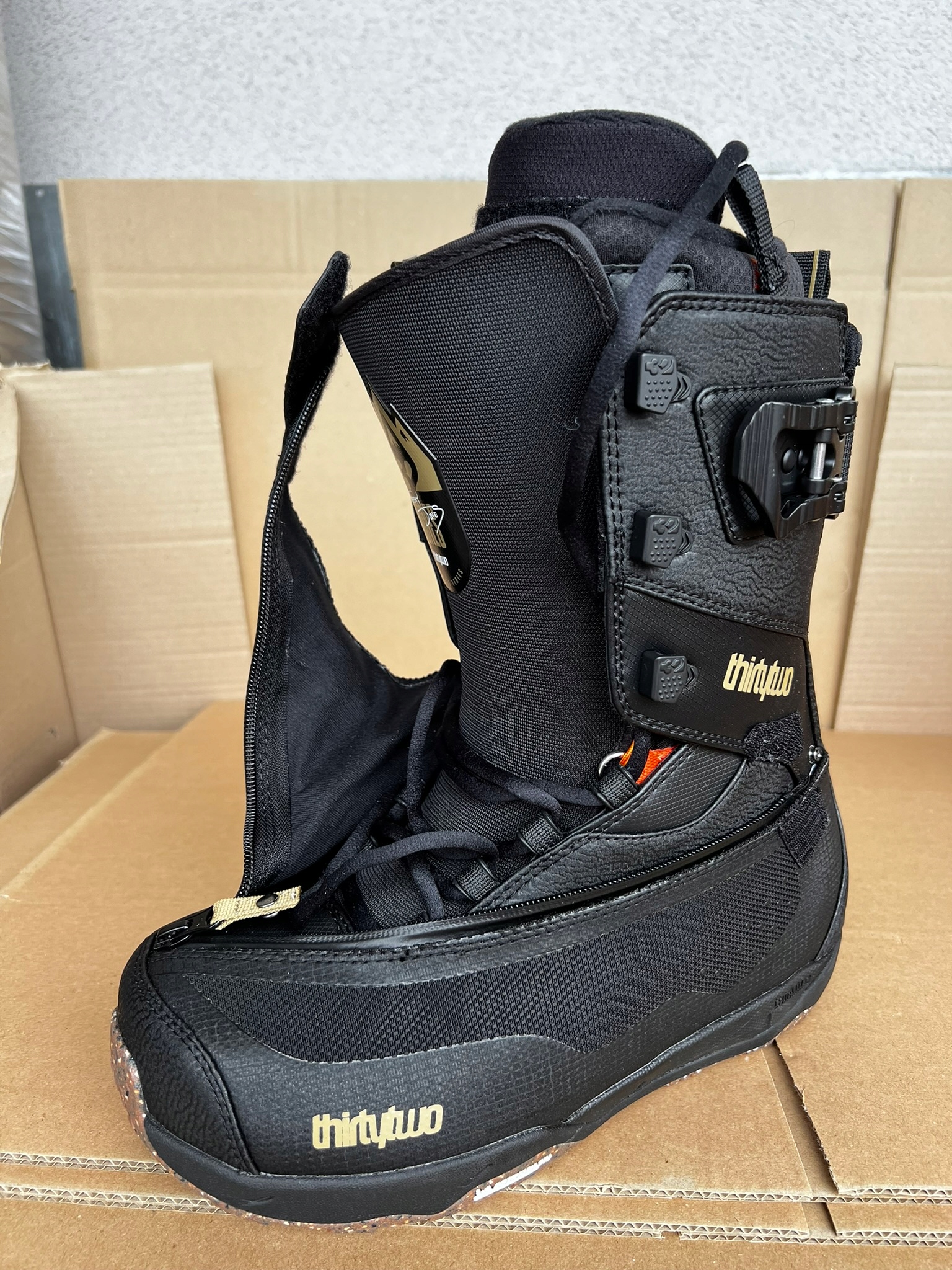 Płaska, techniczna konstrukcja buta to jeden z najwęższych profili w kolekcji ThirtyTwo – idealny do precyzyjnej jazdy i doskonałej kontroli deski. Takie cechy jak asymetryczny system Storm Flap, zapięcie na stuptuty, blokowane sznurowadła i regulowany system mocowania pięty sprawiają, że buty te są niezawodnym wyborem nawet w ekstremalnych warunkach.
