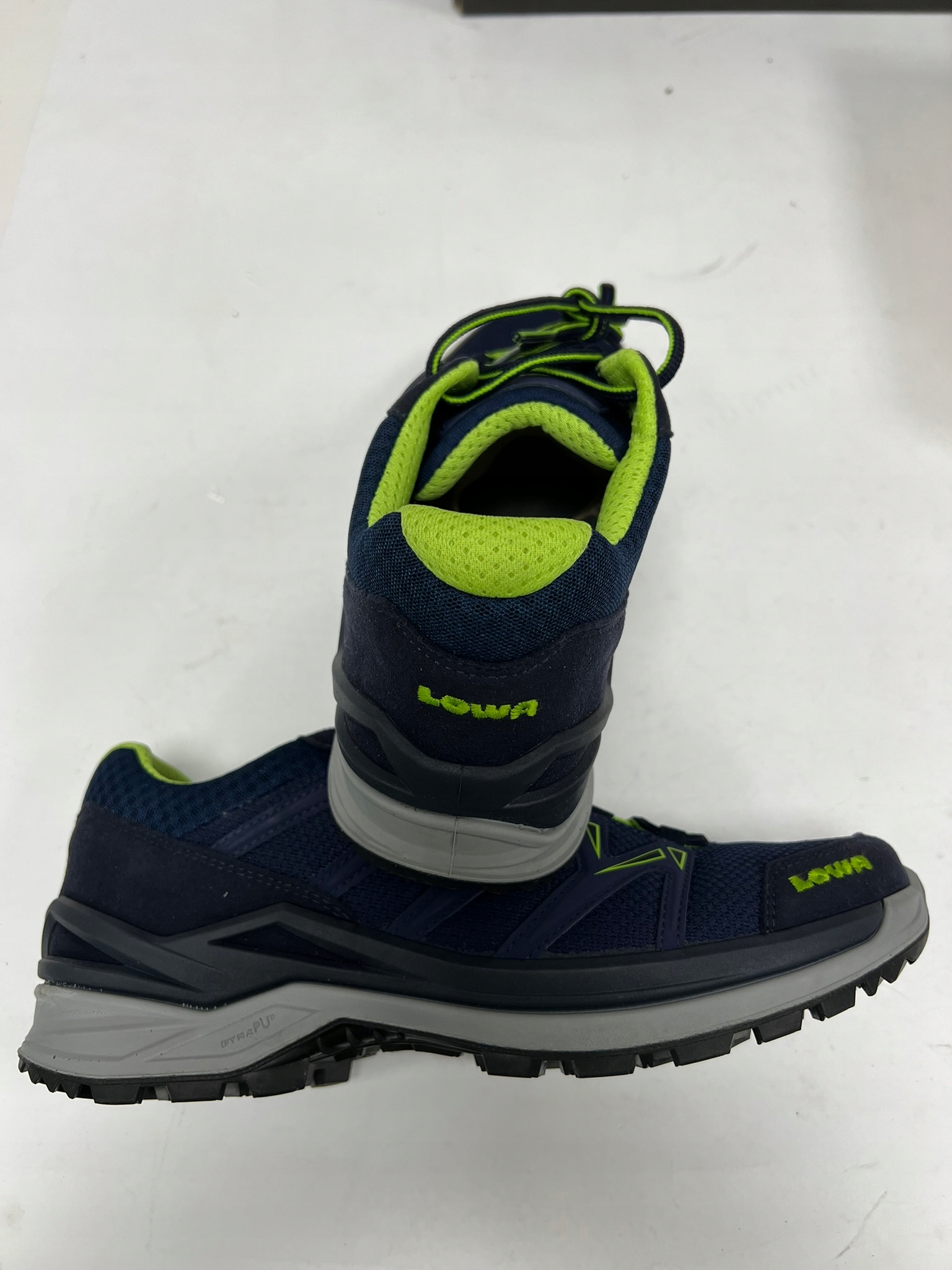 - DynaPU: Podeszwa środkowa jest głównym czynnikiem wpływającym na właściwości toczne i amortyzację obuwia. Wykonana jest ze specjalnie opracowanego tworzywa sztucznego: Lowa DynaPU®. Cecha szczególna: zachowuje swoją siłę odkształcania nawet po tysiącach docisków. Dzięki temu gotowe buty zachowają swoje wyjątkowe właściwości amortyzujące nawet po przejściu wielu kilometrów.