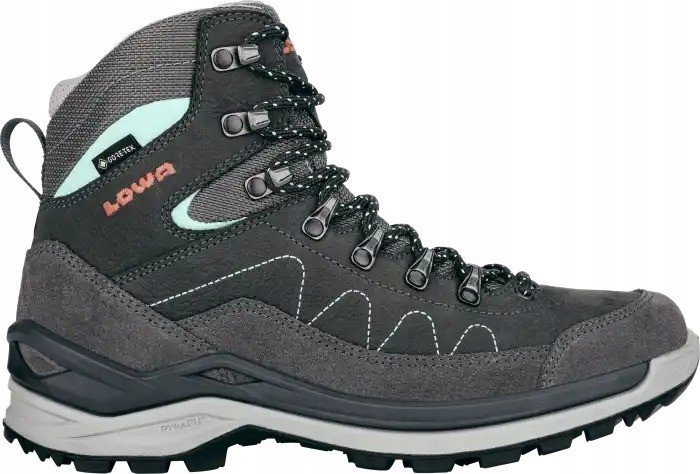 TORO PRO GTX MID Ws to damskie wielofunkcyjne botki. Model ten został zaprojektowany jako innowacyjna, bardziej wytrzymała wersja udanego modelu TORO EVO GTX MID. W pełni wykorzystuje unikalną technologię konstrukcji podeszwy MONOWRAP® z wielokrotnym wtryskiem poliuretanu o różnej sztywności. Gumowy bieżnik LOWA® Multi Trac® II gwarantuje doskonałą przyczepność i stabilność chodzenia. Komfort klimatyczny zapewnia podszewka z membraną obuwniczą Gore-tex.