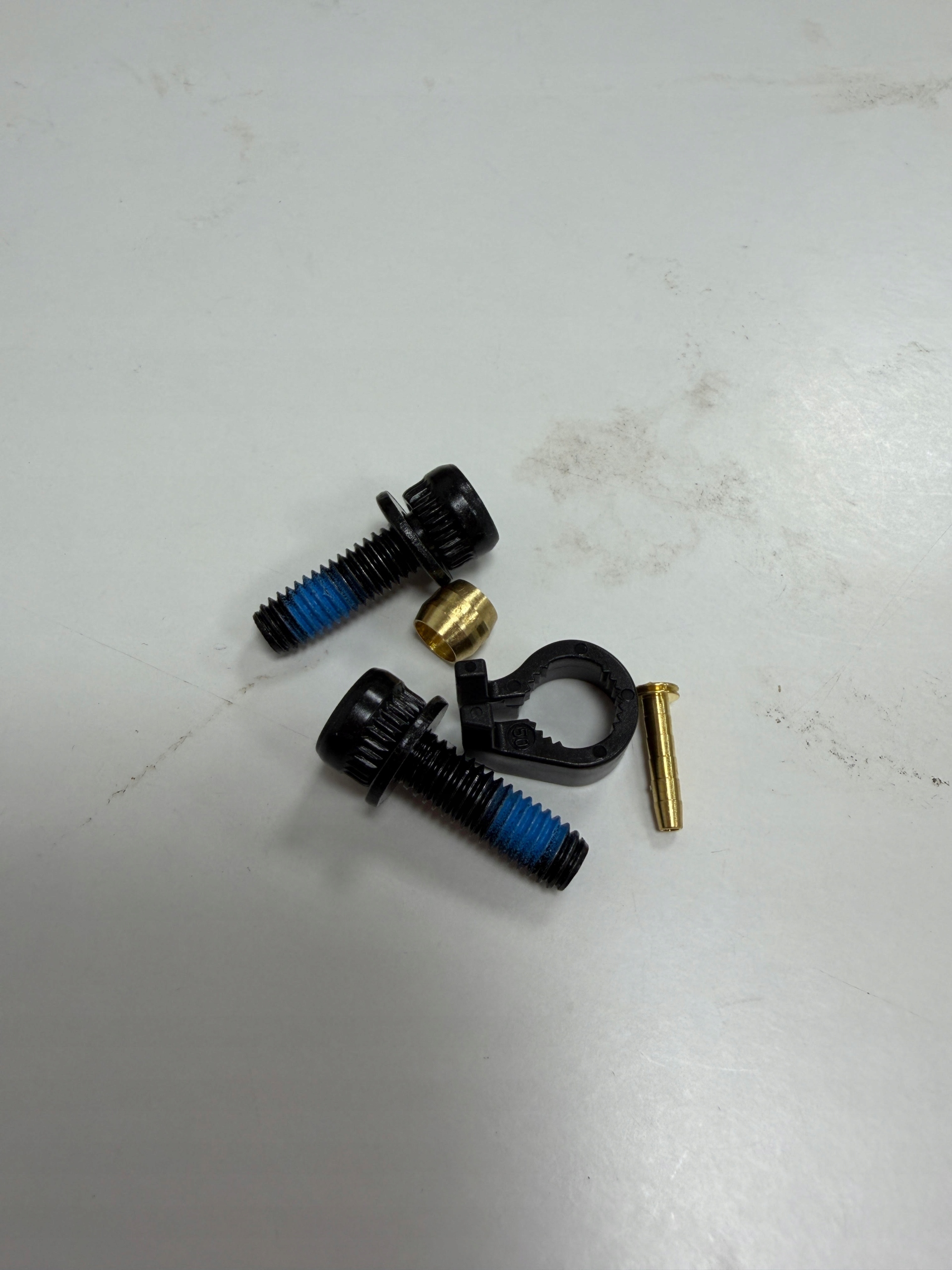 Hamulce są zalane i gotowe do użycia. W zestawie adapter (przód), śruby, oliwka, trzpień i plastikowy element do przewodu – zdjęcia.