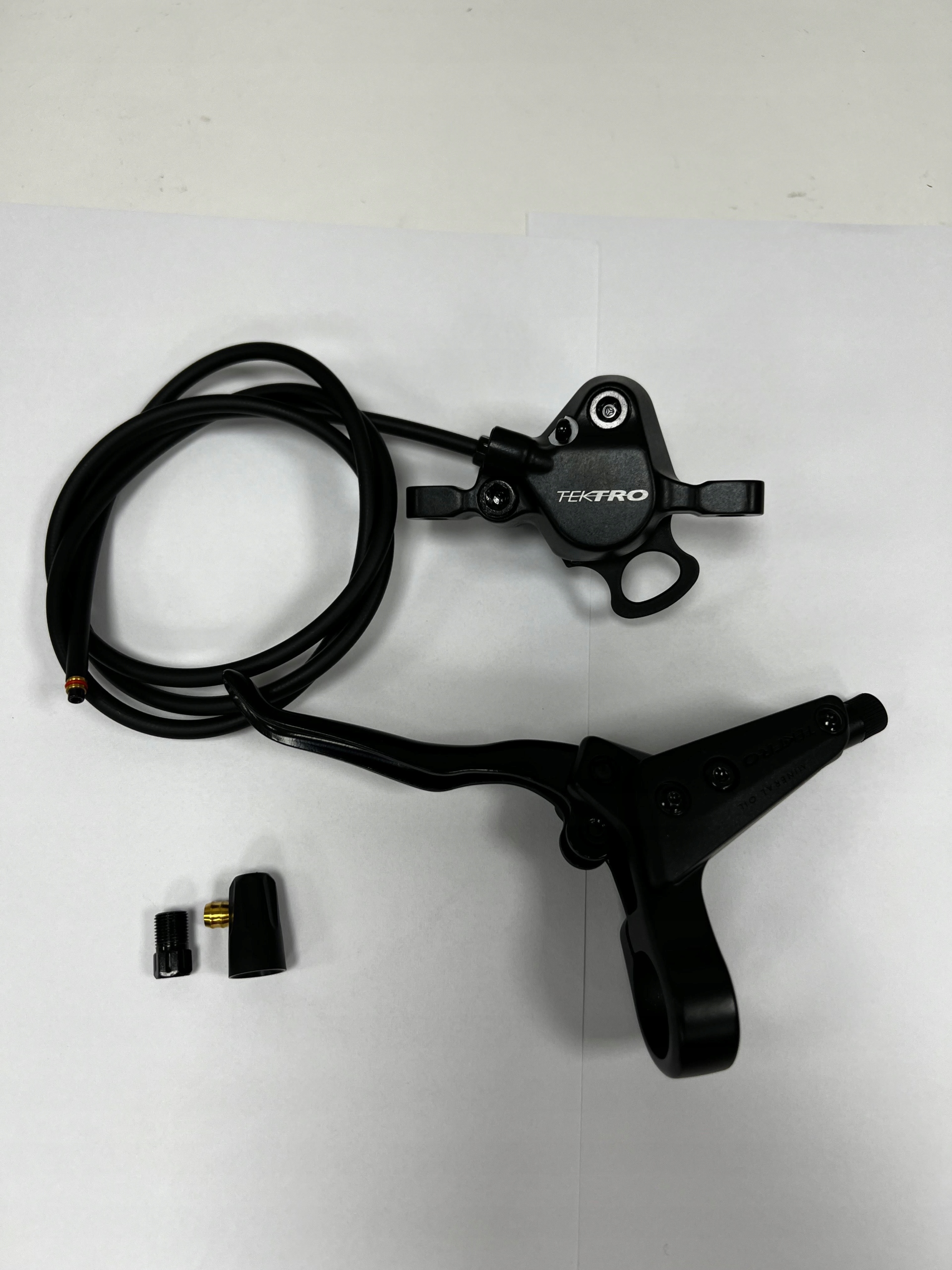 Dobrej jakości hamulec hydrauliczny marki Tektro /open system, dual piston/.