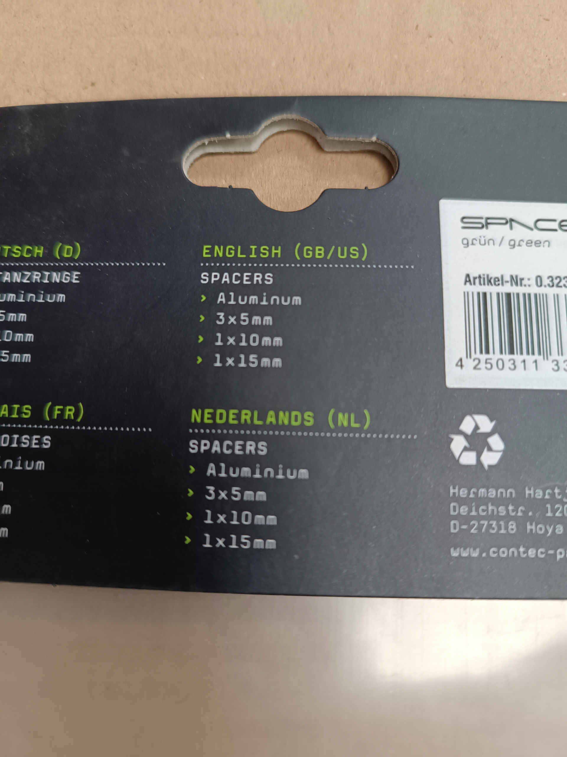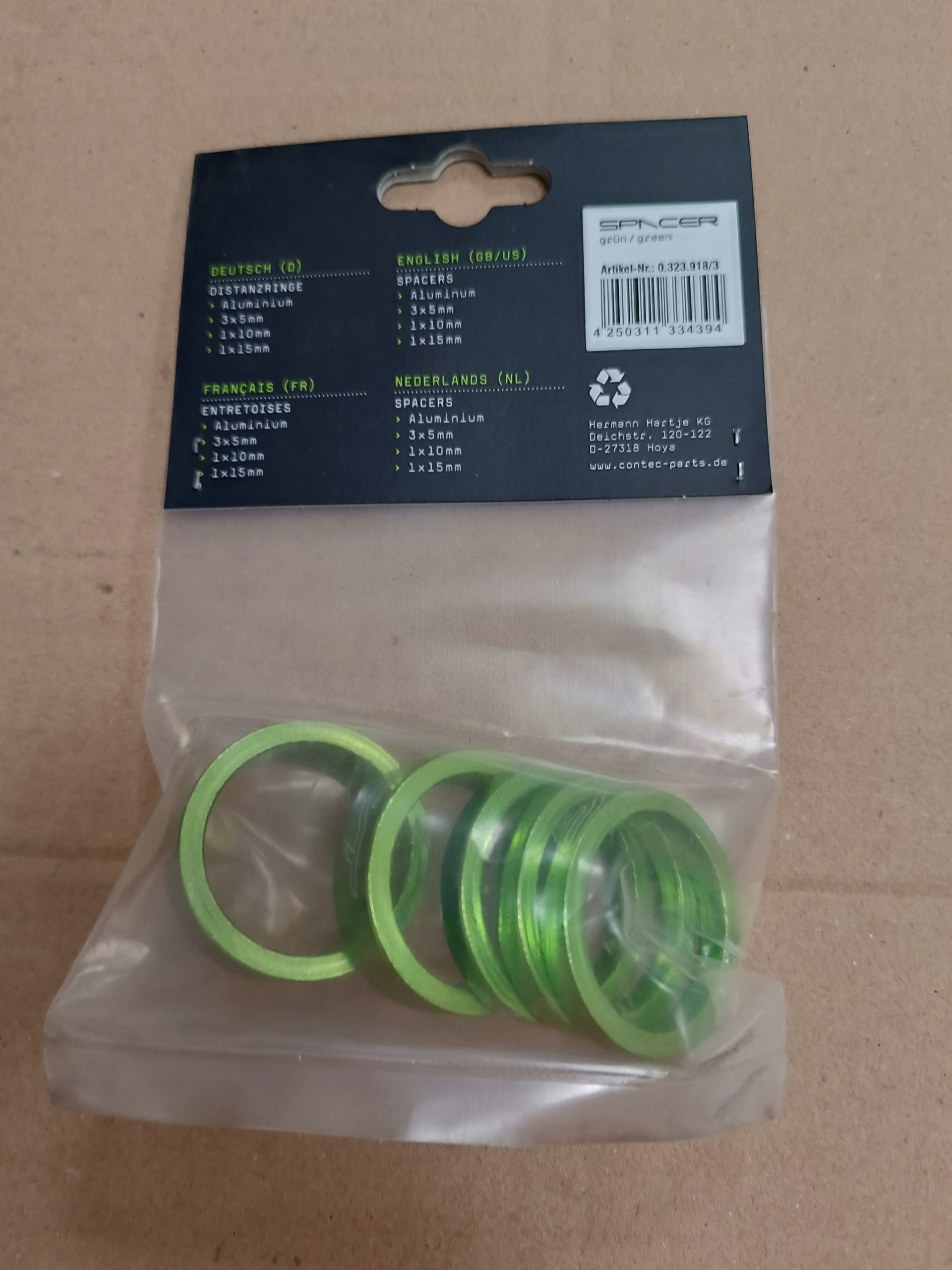 PODKŁADKI DYSTANSOWE 3x5mm, 1x10mm, 1×15 mm -1 1/8″ 5 sztuk zielony Ahead