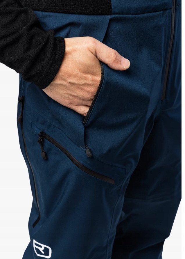 Spodnie na skitury damskie Ortovox wykonano z połączenia trzech materiałów — poliamidu, poliuretanu oraz wełny merino. Poliamid zastosowano w warstwie zewnętrznej, materiał wyróżnia się znaczną wytrzymałością. Membrana w tych spodniach na skitury została zaprojektowana z wodoodpornego poliuretanu. Od wewnętrznej strony zastosowano materiał z wełny merino. Wełna ma właściwości antybakteryjne, a więc spowolni powstawanie przykrych zapachów. Co więcej, ten materiał bardzo dobrze oddycha oraz ogranicza ryzyko powstawania podrażnień. Wełna merino ma również właściwości termoregulacyjne. spodnie na skitury mają jedną kieszeń z tyłu oraz dwie kieszenie na biodrach.